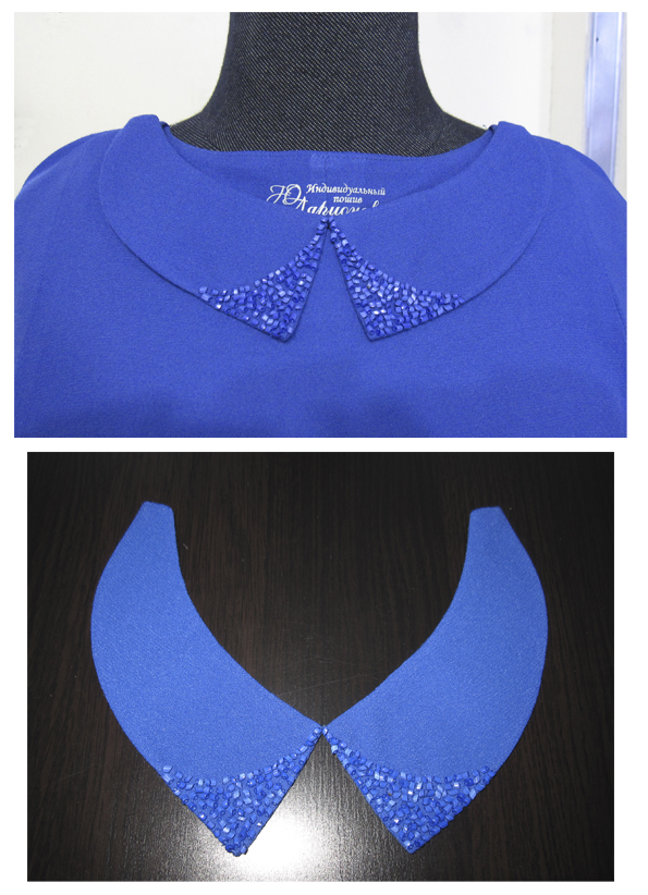 Крепиться с помощью крючков к нитяным петлям, обработанным в плечевом шве.