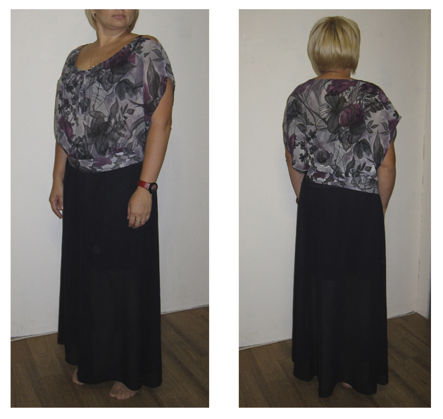 Верх пояс кокетка. В боковых швах обработаны разрезы.